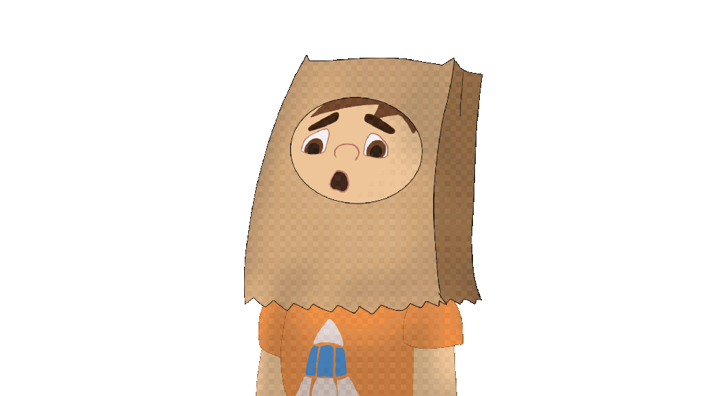 Today I worked on the character animation for the child in the last frame. The child is a caricature of me. The charcter style is a disney-esqued style and the colours of his costume innterplay throuhgout the video. In reality the child is wearing a home made paper bag helmet. At first I wanted to make a more polished version of it with a foli cover sphere and a visor attached but opted for a much simplistic paper bag version, as I belived the gave the character more innocence.