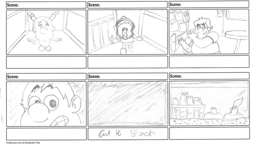 After meticulously finalizing the character designs and gaining a comprehensive understanding of the classroom surroundings and sets through thorough site visits, I proceeded to complete my initial animatic with dialogues recorded by my friends. The primary objective of this stage was to effectively translate the intricacies of my storyboard into a series of meticulously crafted shots. My foremost priority lay in meticulously refining and locking each shot, ensuring a nuanced interplay of levels and scales. By strategically manipulating perspectives, I aimed to imbue the visual narrative with an overarching sense of grandeur, evoking the perspective of a child.