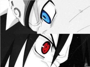 However, both of these characters share somepersonality traits which is pottrayed in their eye colours. Here, Sasuke Uchiha’s eyes are red (representing the Uzumaki clan/ their hair color) and Naruto Uzumaki’s eyes are Blue (representing the Uchiha clans/ their hair color)