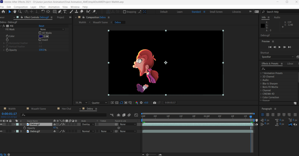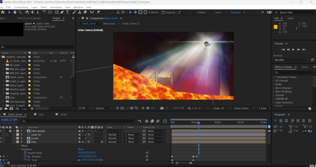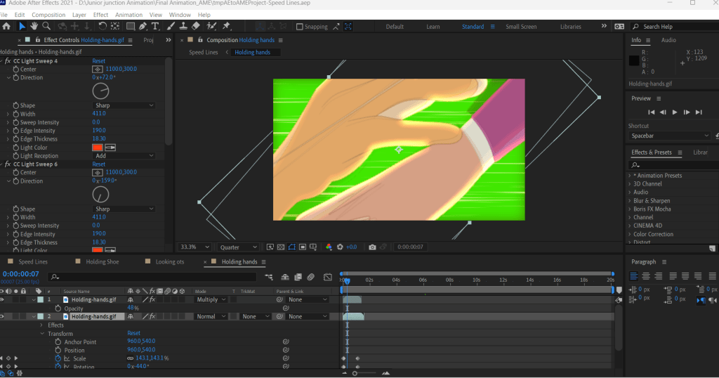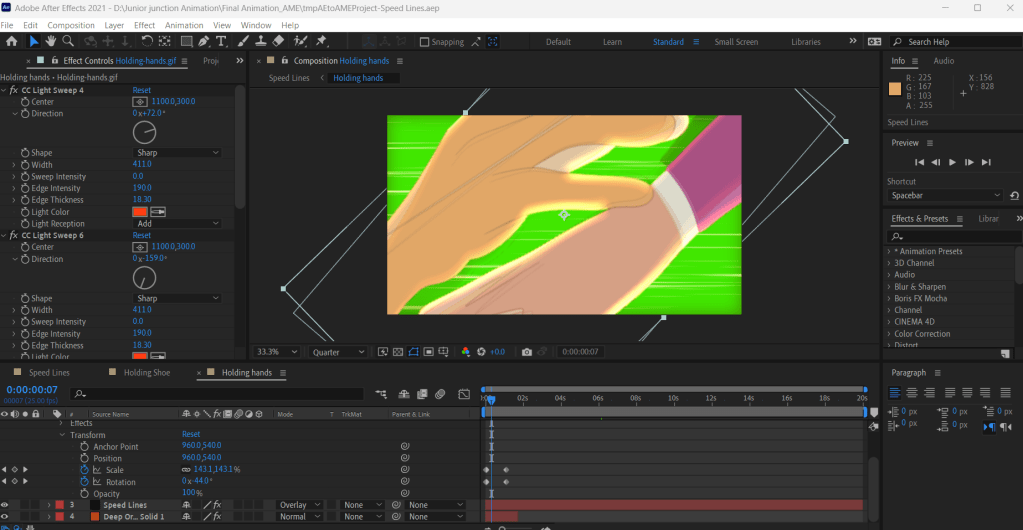 The world of animation is a canvas where creativity flows boundlessly, but it’s also a realm where deadlines are a reality. As much as I’d love to craft every scene to perfection, the constraints of time remind me that sometimes we need to make choices that allow us to present the best version of our work within the given timeframe. There were some not so complicated shot so instead of adding a smear I went with an anime style approach and added speed lines, they worked even better than I believed them to be